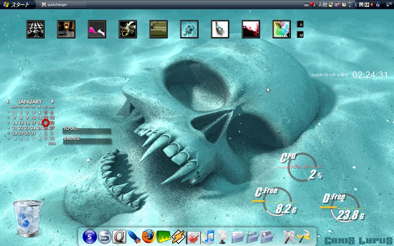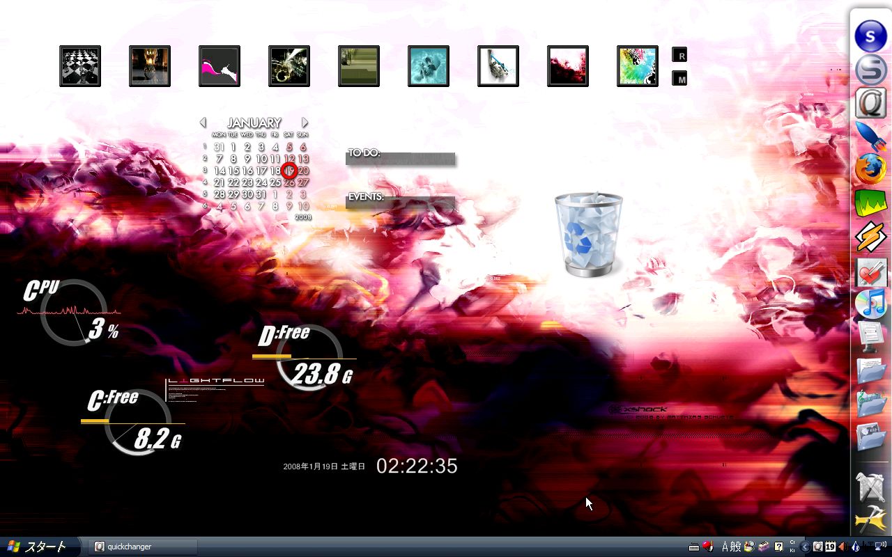 そんなことにめげずにデスクトップいじってたゎ(笑 まぁそんなことゎさておき、 昨日出来なかったデスクトップ改造ツールの紹介だ!! このツールゎRainmeterっていうツールで出来るんだ! 詳しくゎここ↓で見るとゎかりやすい! http://www7a.biglobe.ne.jp/~sun1/submanual/rainmeter/rainmeter1.html そしてこの これゎRainlenderとぃうツールです! http://tettyanblog.blog60.fc2.com/blog-entry-129.html 詳しくゎ↑ここで見るとゎかりやすぃ! まぁこの二つくらぃで大体格好良くゎなるんですが、明日ゎ「RocketDock(ロケットドック)」とぃうツールと、XPのPCをVISTA風PCにする方法を紹介します!! でゎ(≧ω≦)ノシ PR |